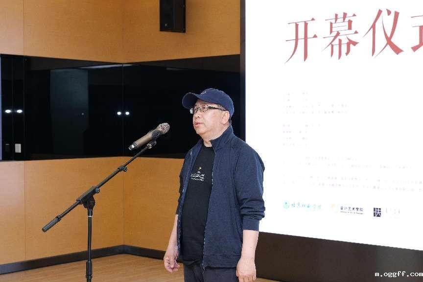 胡杰讲述了其与张慈中先生一同推动北京印刷学院艺术设计学科的建设和创新性教育模式的心路历程,并宣布展览开幕。