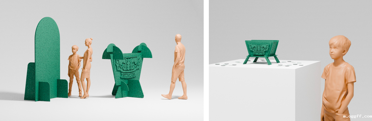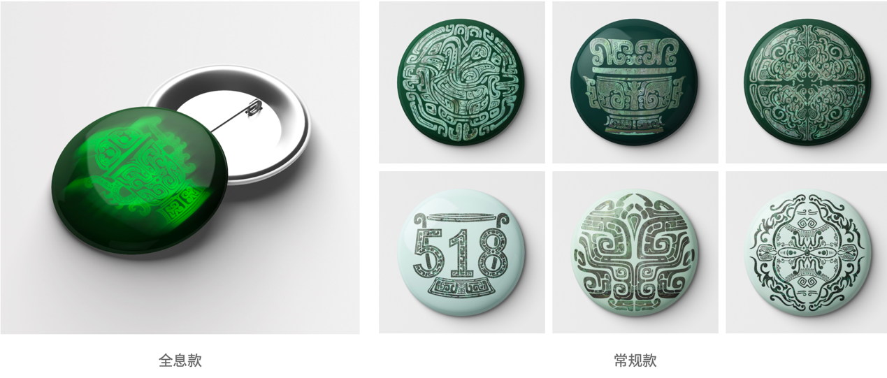 团队还设计了中华文明起源系列展览《看·见殷商》配套文创,以殷商青铜文明为根基,借助全息裸眼3D技术打破传统维度限制,将蕴含着深厚历史底蕴与丰富文化内涵的青铜纹样进行创新性设计,转化为灵动的动态悬浮立体图腾,打造出独具匠心的徽章与冰箱贴。运用现代设计语言重新诠释青铜器经典纹样,打造出融合科技、文化与视觉美感的科技文创精品,让古老文明的璀璨瑰宝在当代重新焕发生机与活力。通过材质创新、技术赋能与设计转译的三重突破,成功构建了一座连接古老文明与现代生活的美学桥梁,使殷商青铜艺术以更轻盈、更具交互性的形式融入当代生活场景。除了文创设计本身,还精心完成了配套的展示设计,全方位呈现这一系列作品的独特魅力,让观众在欣赏与体验中深刻感受古老文明与现代科技的完美融合。